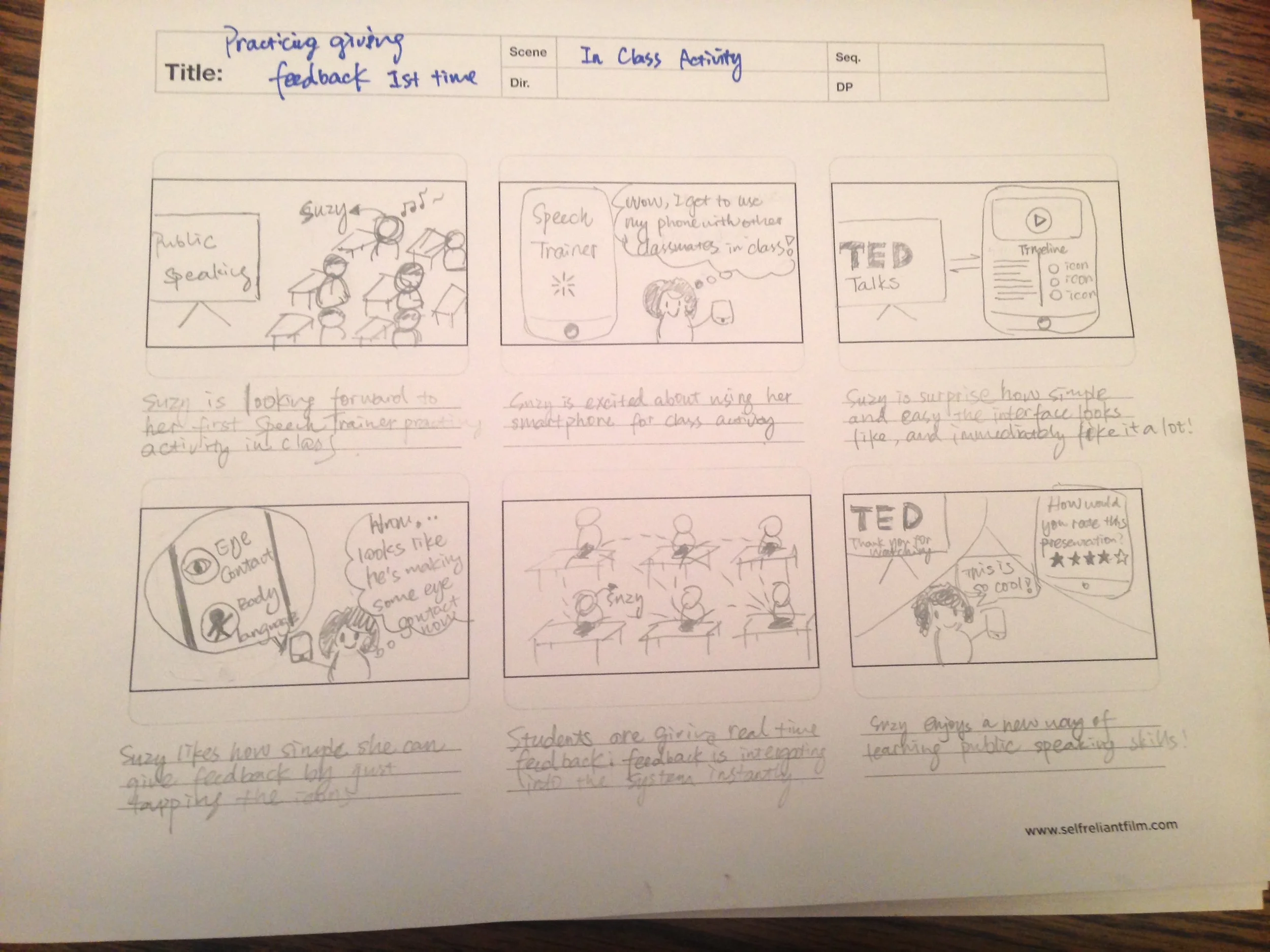 Our primary persona is Shaky Suzy, a freshmen in college who is taking her first public speaking class.